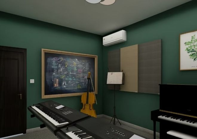 房间内进行适度的声学装修,可以采取安装扩散板,低频陷阱,避免混响。根据乐器类型,合理布局谱架、乐器架和舒适的练习座椅。