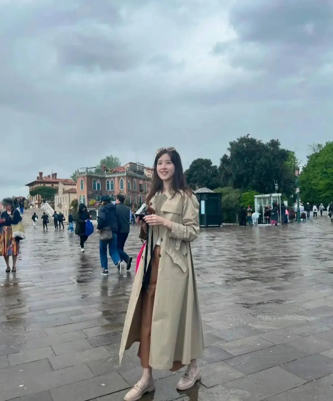 她戴的墨镜,颜色跟头发几乎一模一样,这种小细节也挺讲究的,看得出她对穿搭很有自己的想法。