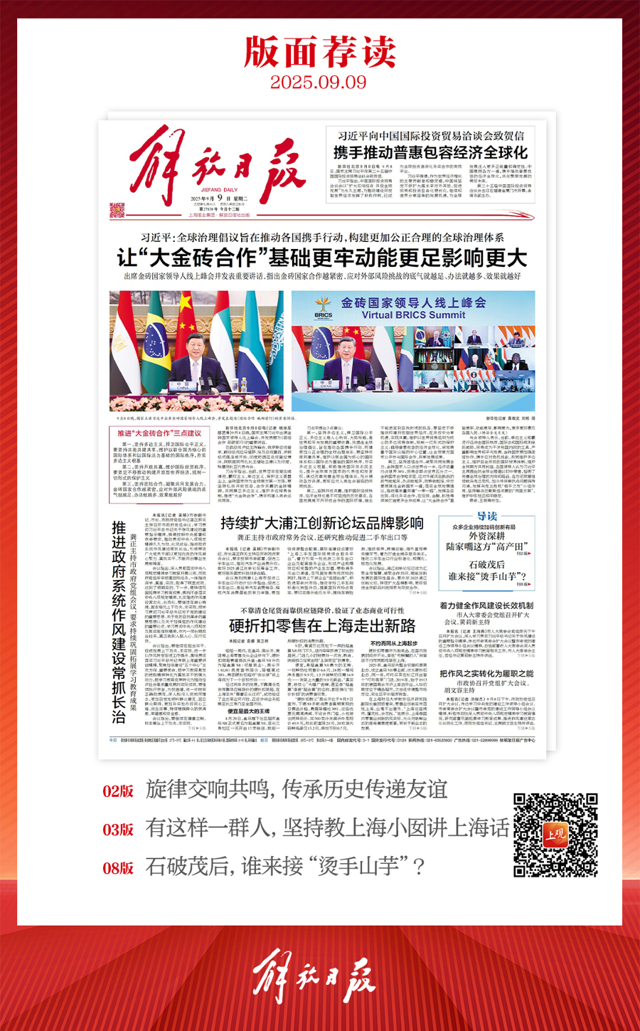 早上好!上观新闻『早读』来啦!2025年9月9日 星期二 农历七月十八上海阴到多云有阵雨或雷雨,局部地区雨量可达大雨,27~31℃